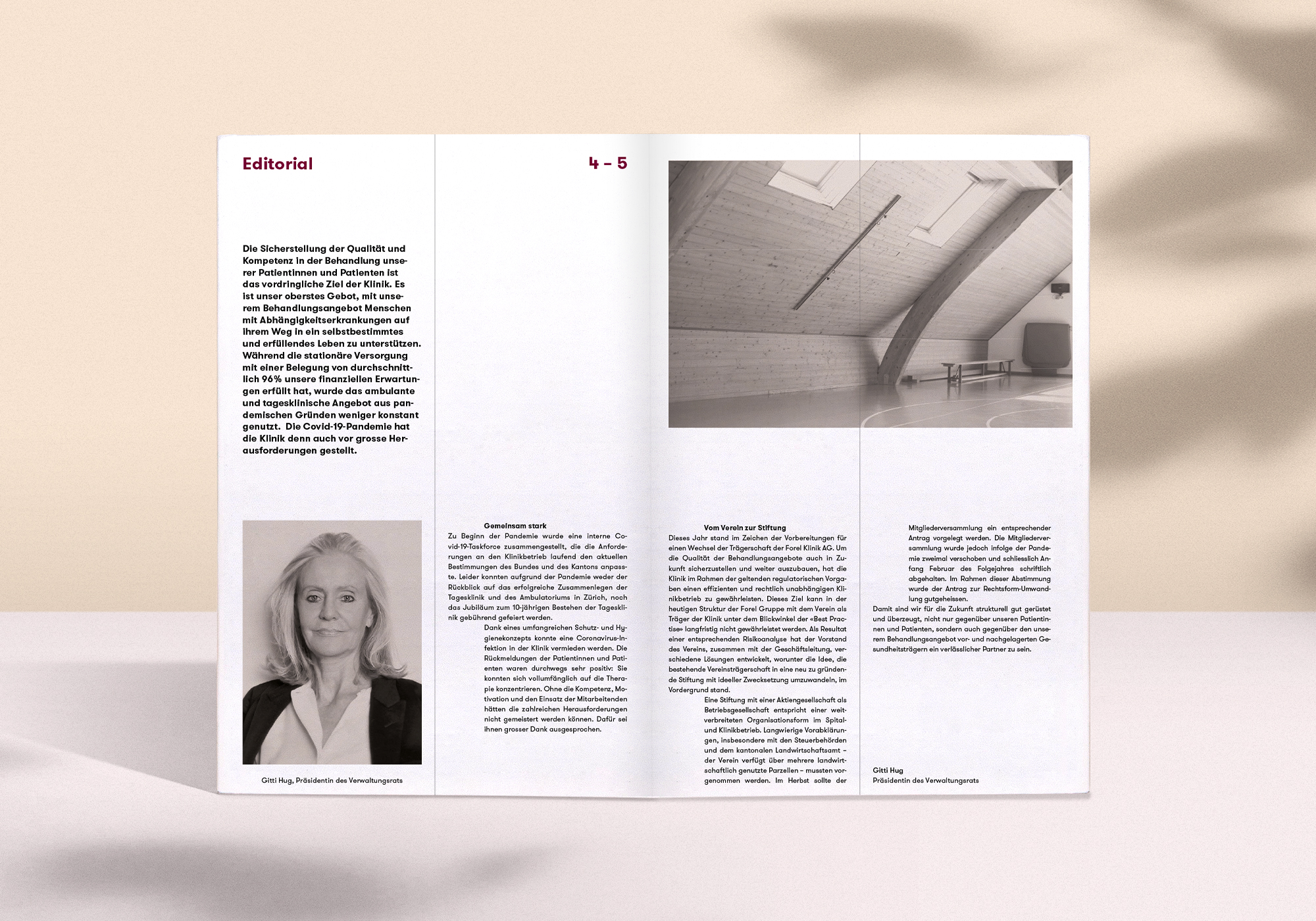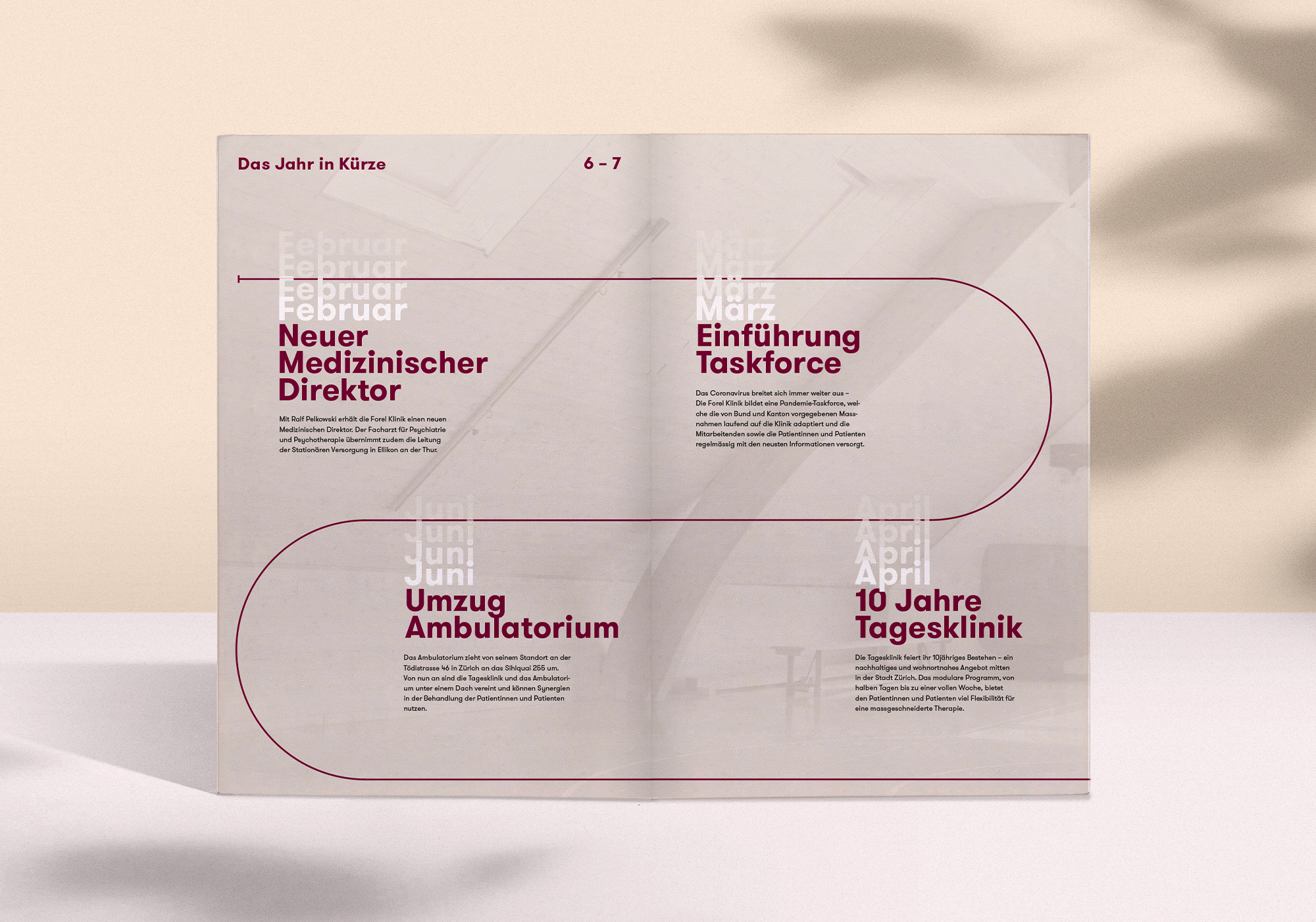 Jahresberichte gehören zu den wichtigsten Corporate Produkten eines Unternehmens. Wie kann eine Organisation oder Firma nun in angemessener und attraktiver Form auf die aktuellen Themen und Zahlen hinweisen und gleichzeitig dazu einladen, den Jahresbericht digital anzuschauen? Für die Forel Klinik AG setzten wir die Jahresbericht-Webseite 2020.forel-klinik.ch um und machten mit einem «einfach auffallenden» Flyer darauf aufmerksam. Der Flyer wurde an die Zuweiser und Partner der Forel direkt ab Druckerei per Post versendet.